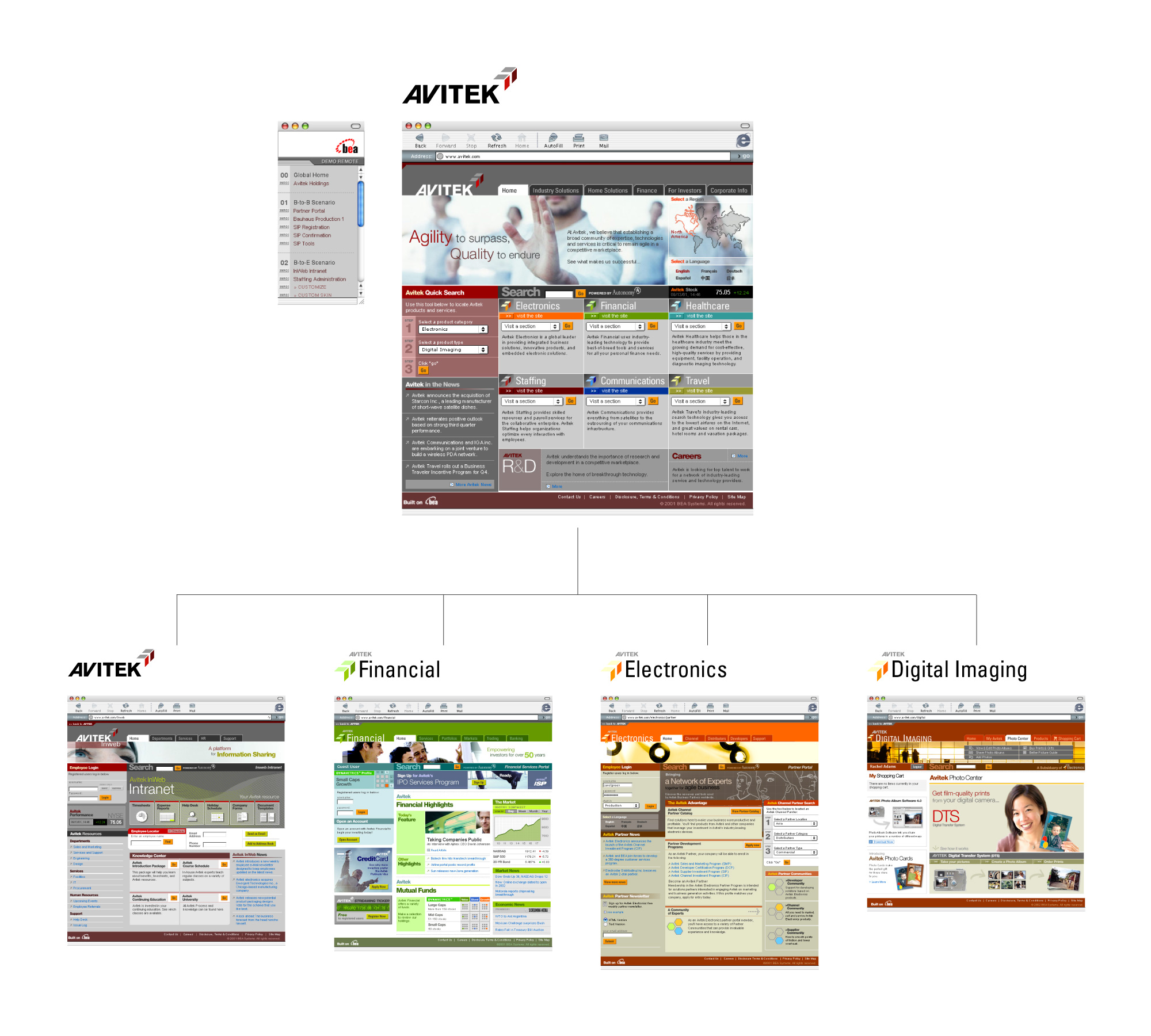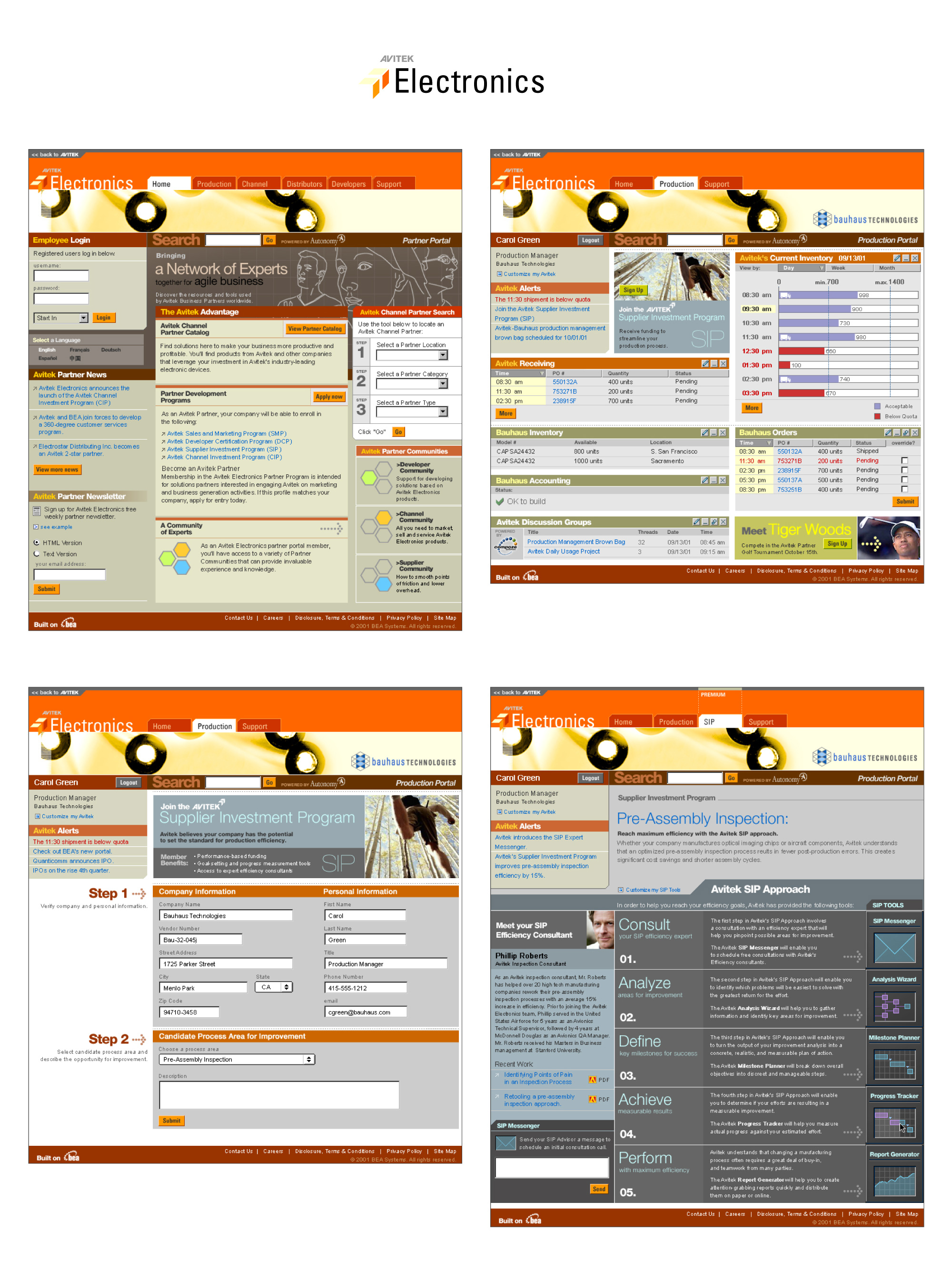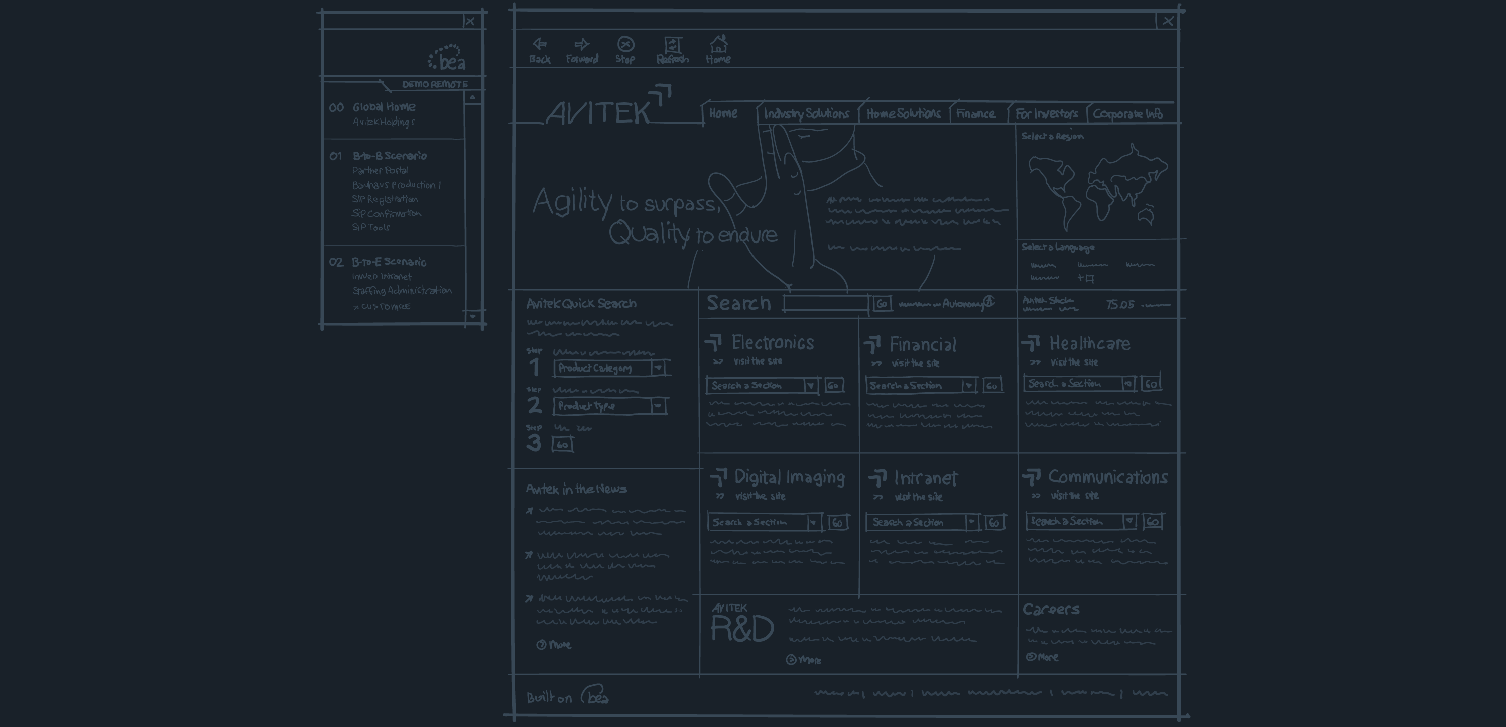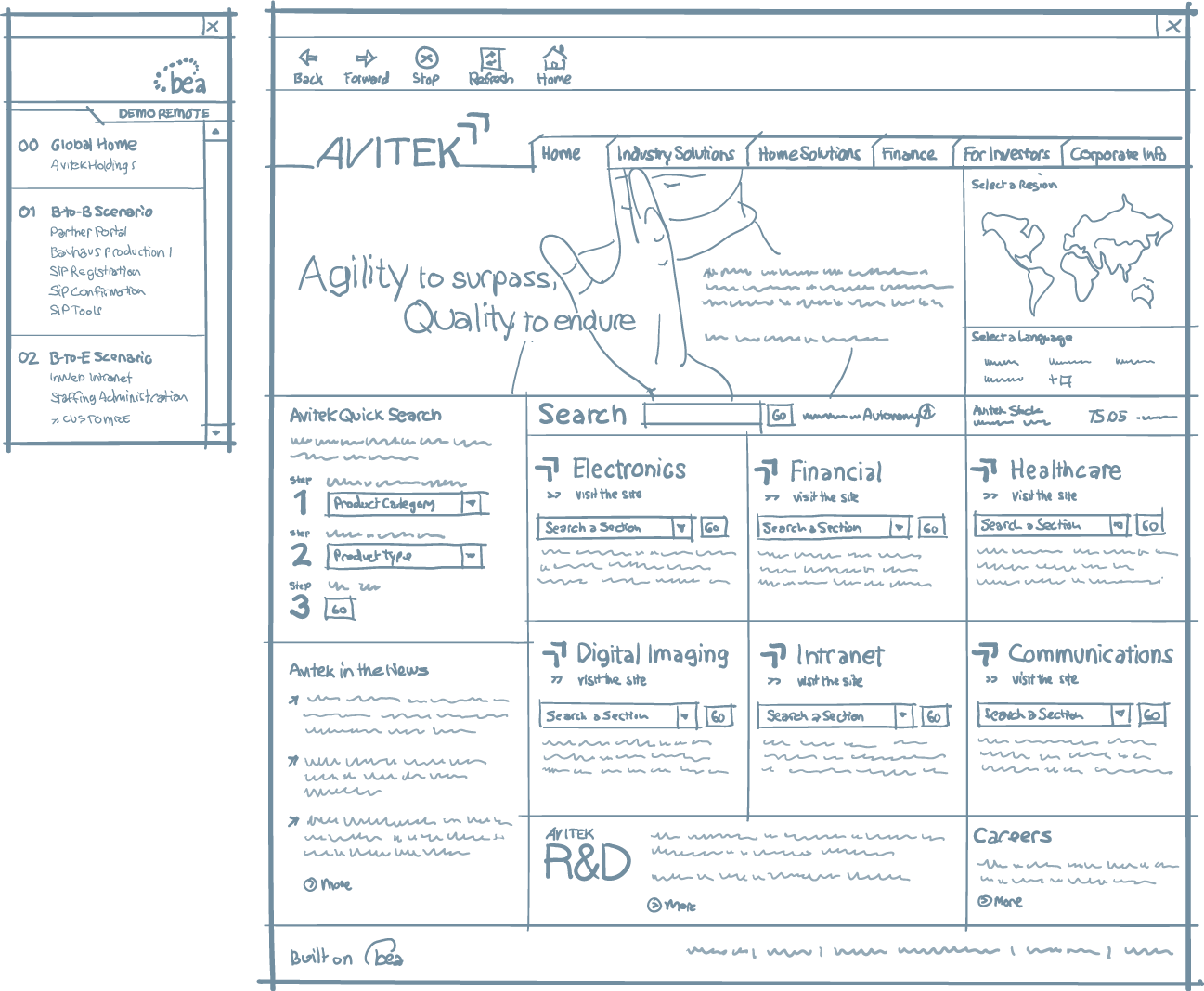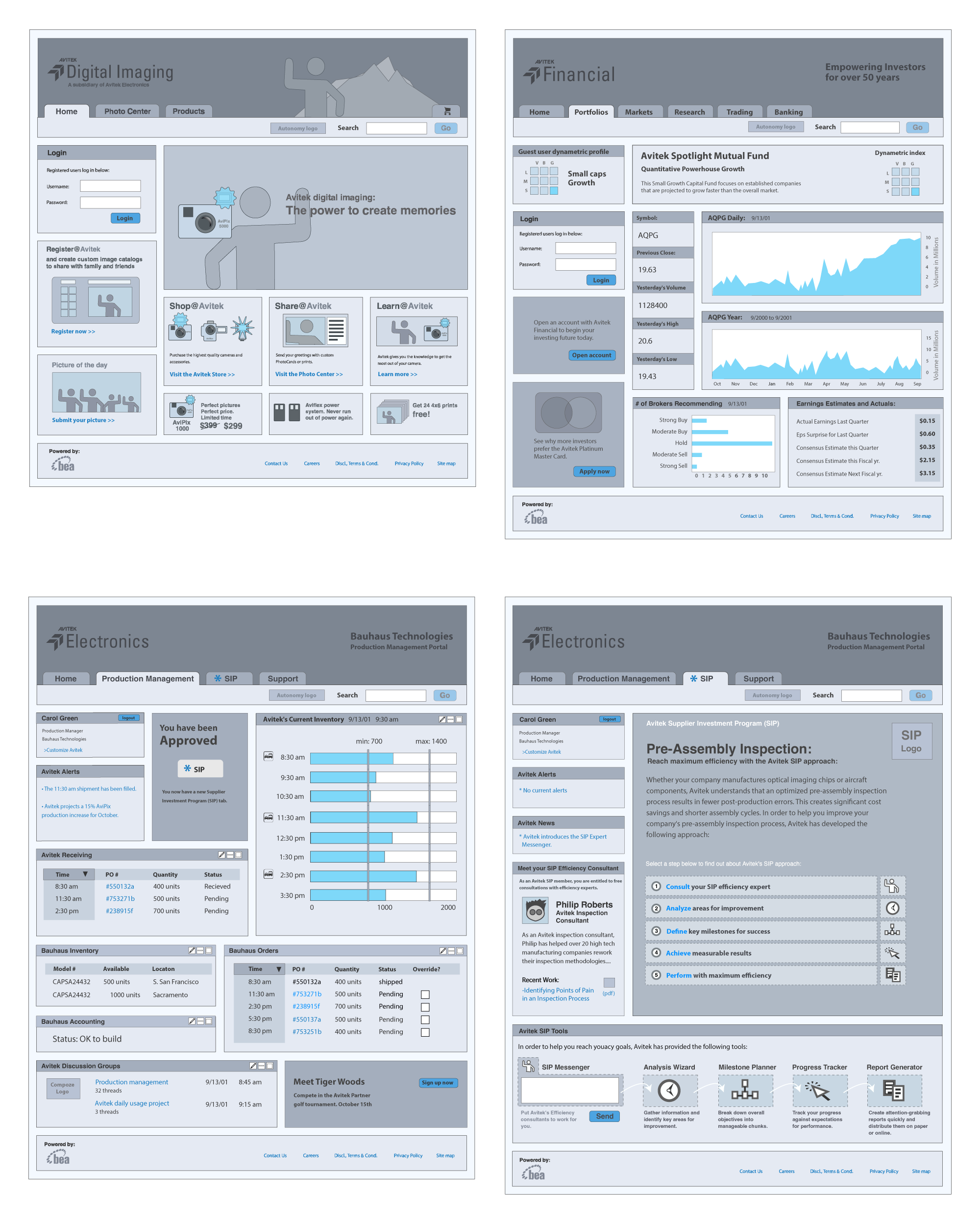 Avitek intranet was created to show how BEA's portal technology could be used to easily compose dashboard pages for company employees. Each demo was about 10-12 pages long, and each page had just enough interactivity to create the impression that the presenter was interacting with a live website.
