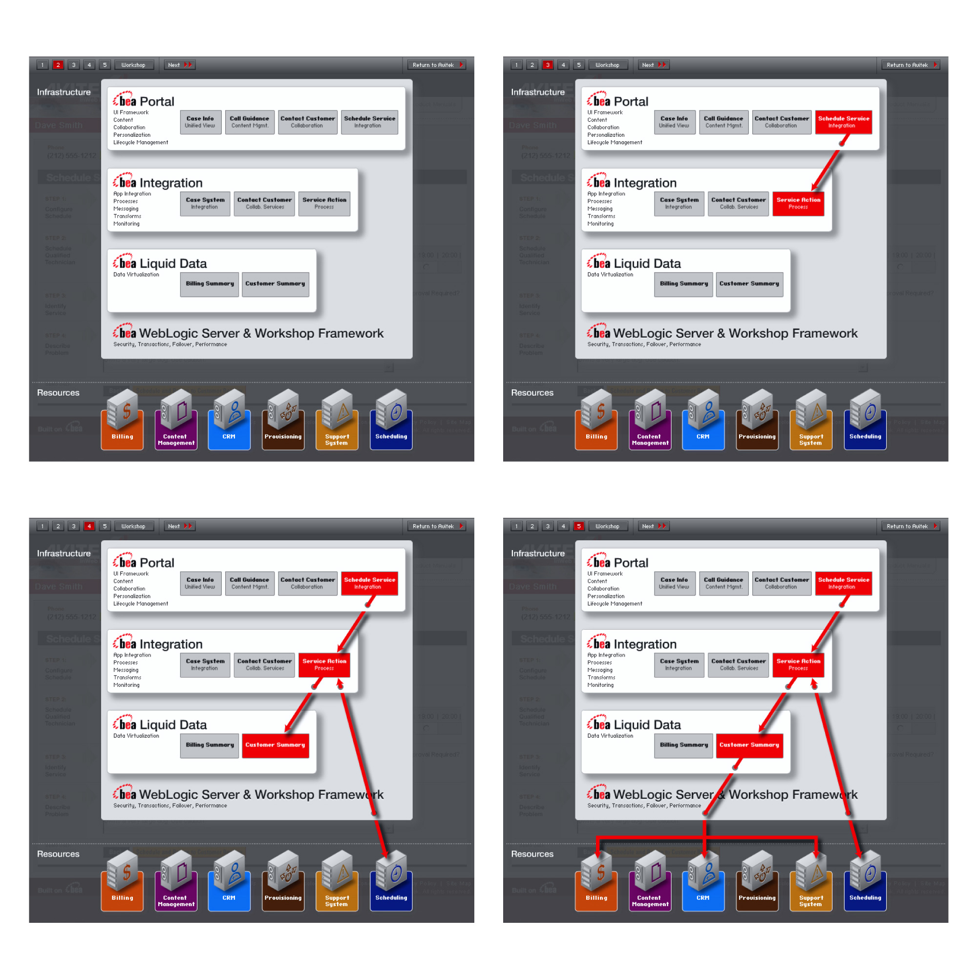 We created demo overlay animations to help explain how each demo screen was powered by BEA's software. The animations could be called up as needed.