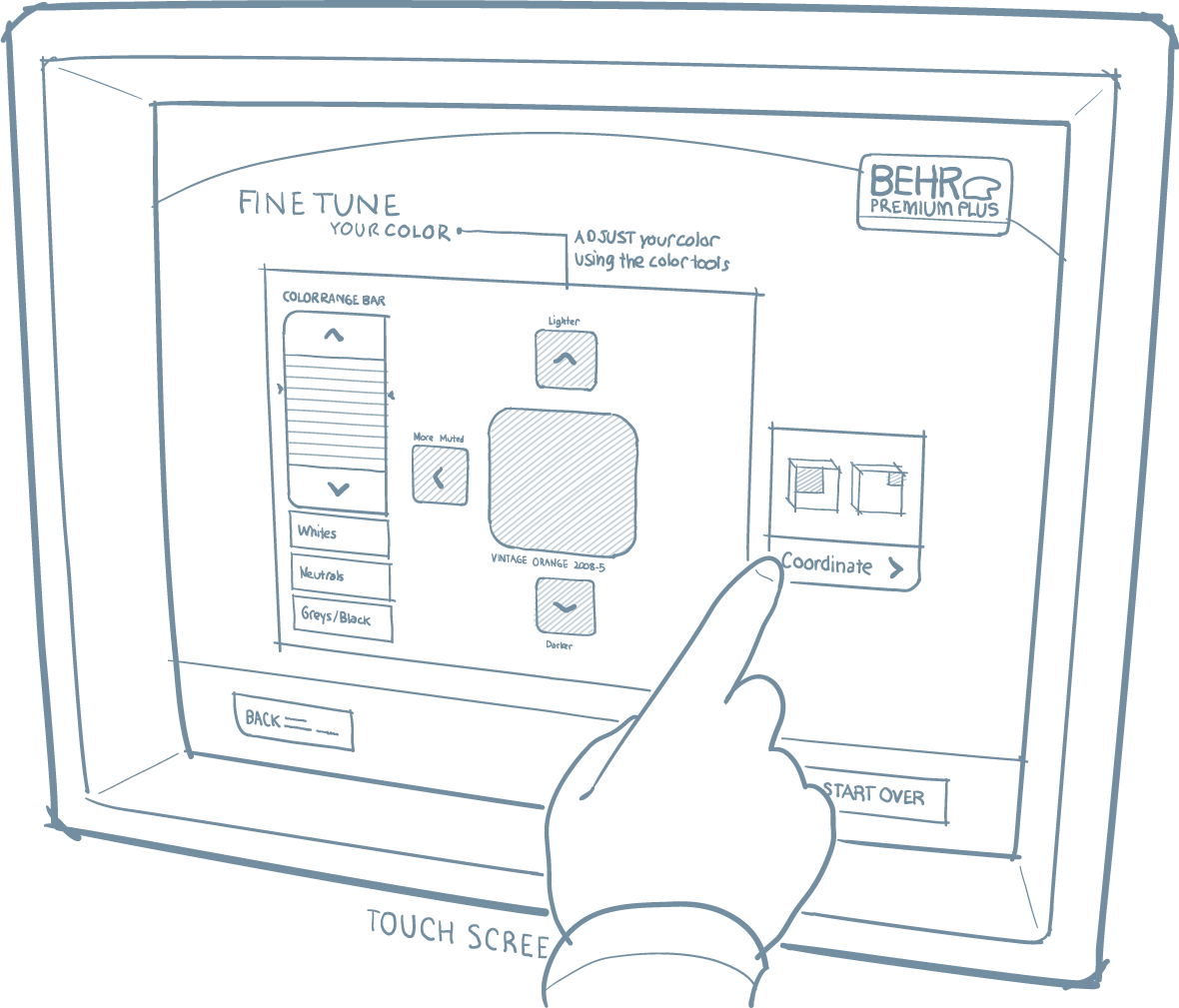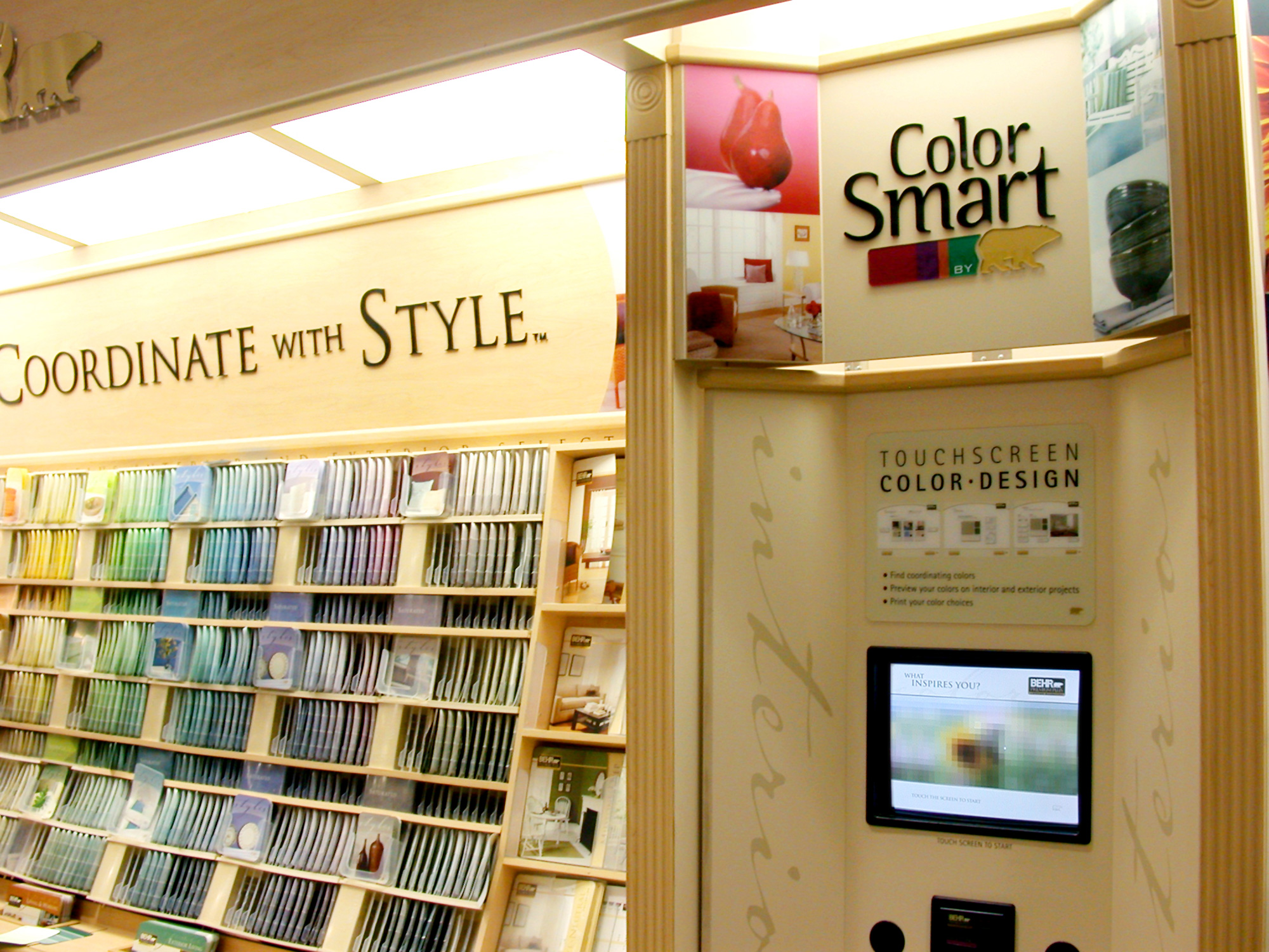 [↓] The Behr ColorSmart Kiosk would be competing for attention in busy Home Depots across North America. It had to be intuitive to use and help people find paint color choices in just a couple of minutes.