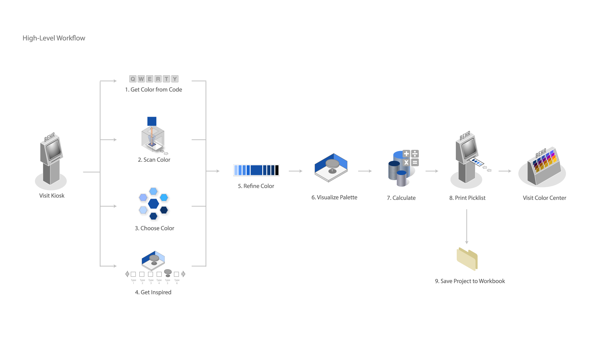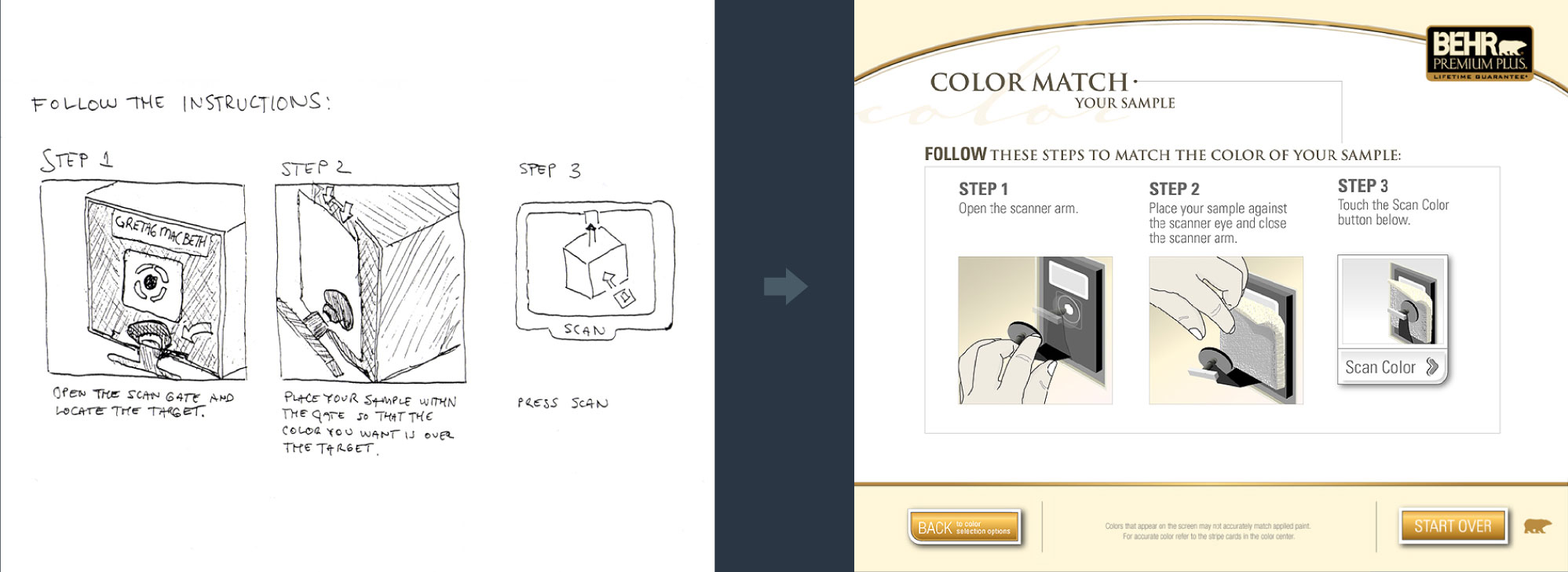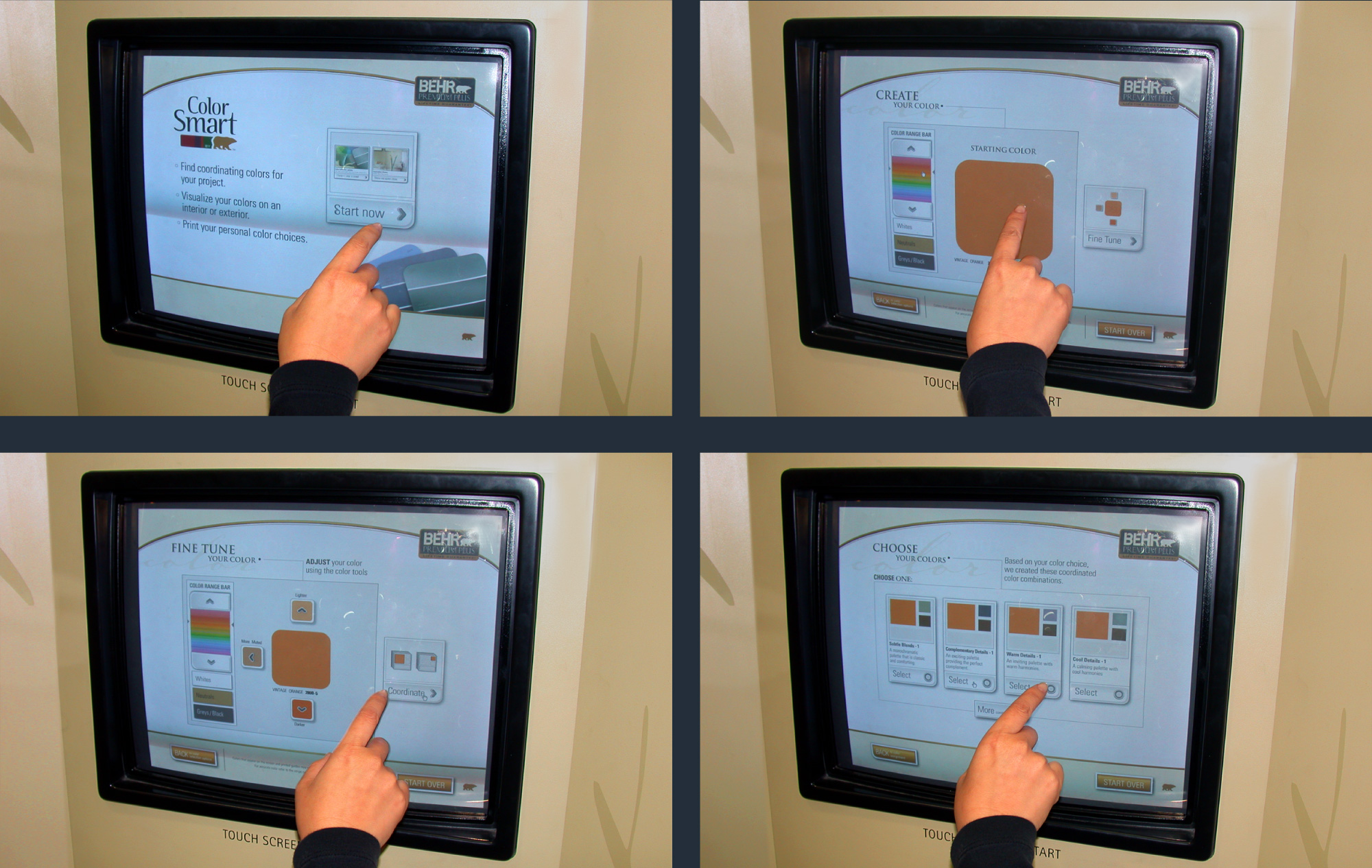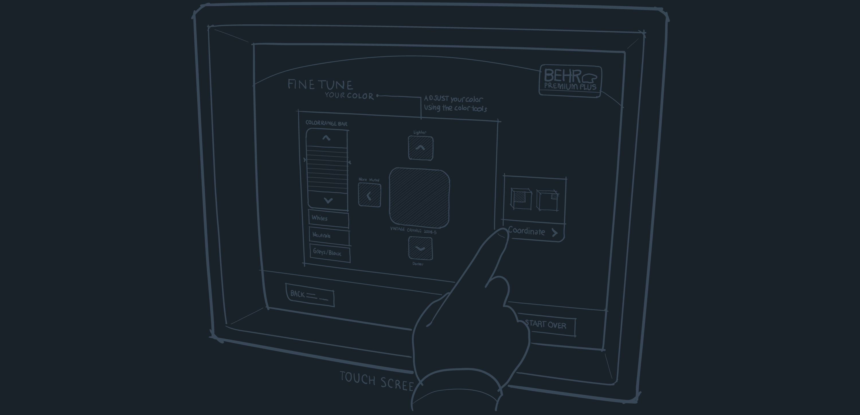 The Behr ColorSmart Kiosk would be competing for attention in busy Home Depots across North America. It had to be intuitive to use and help people find paint color choices in just a couple of minutes.
