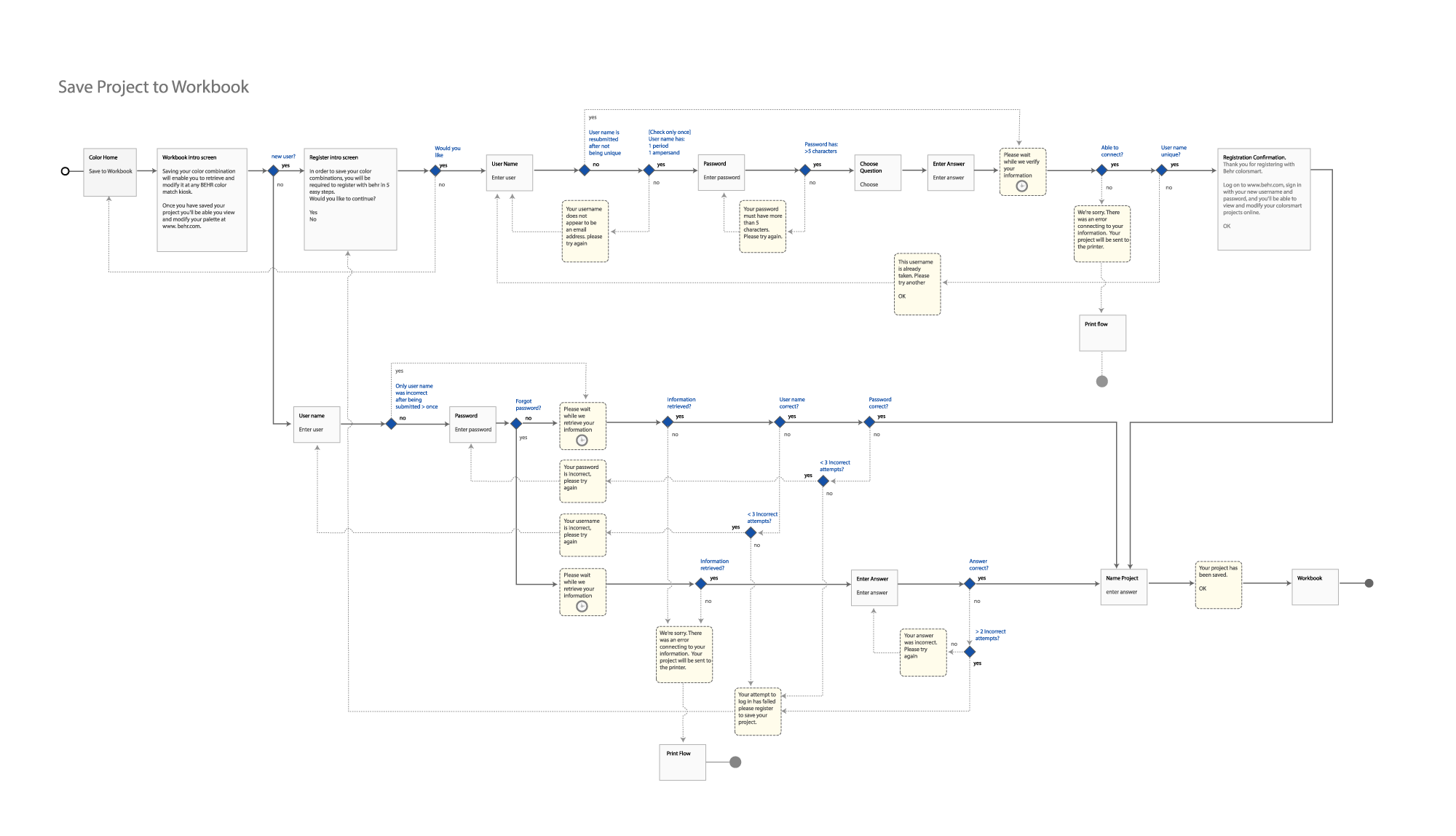 [↓] It was important to help our team get a handle on the scope of work. There were a lot of conditionals and edge-cases to consider. Thoroughly mapping the interactions and unhappy path states helped streamline the visual design and engineering work.