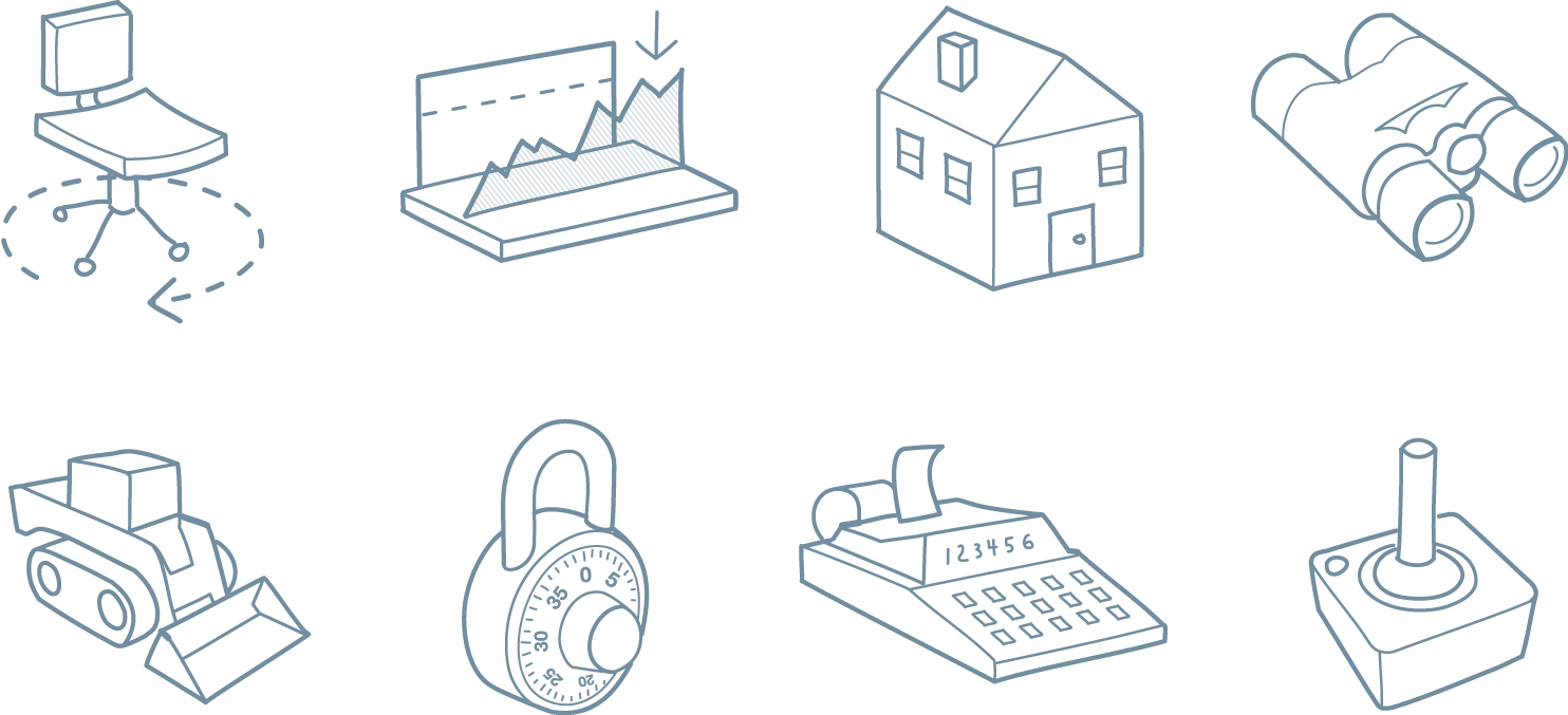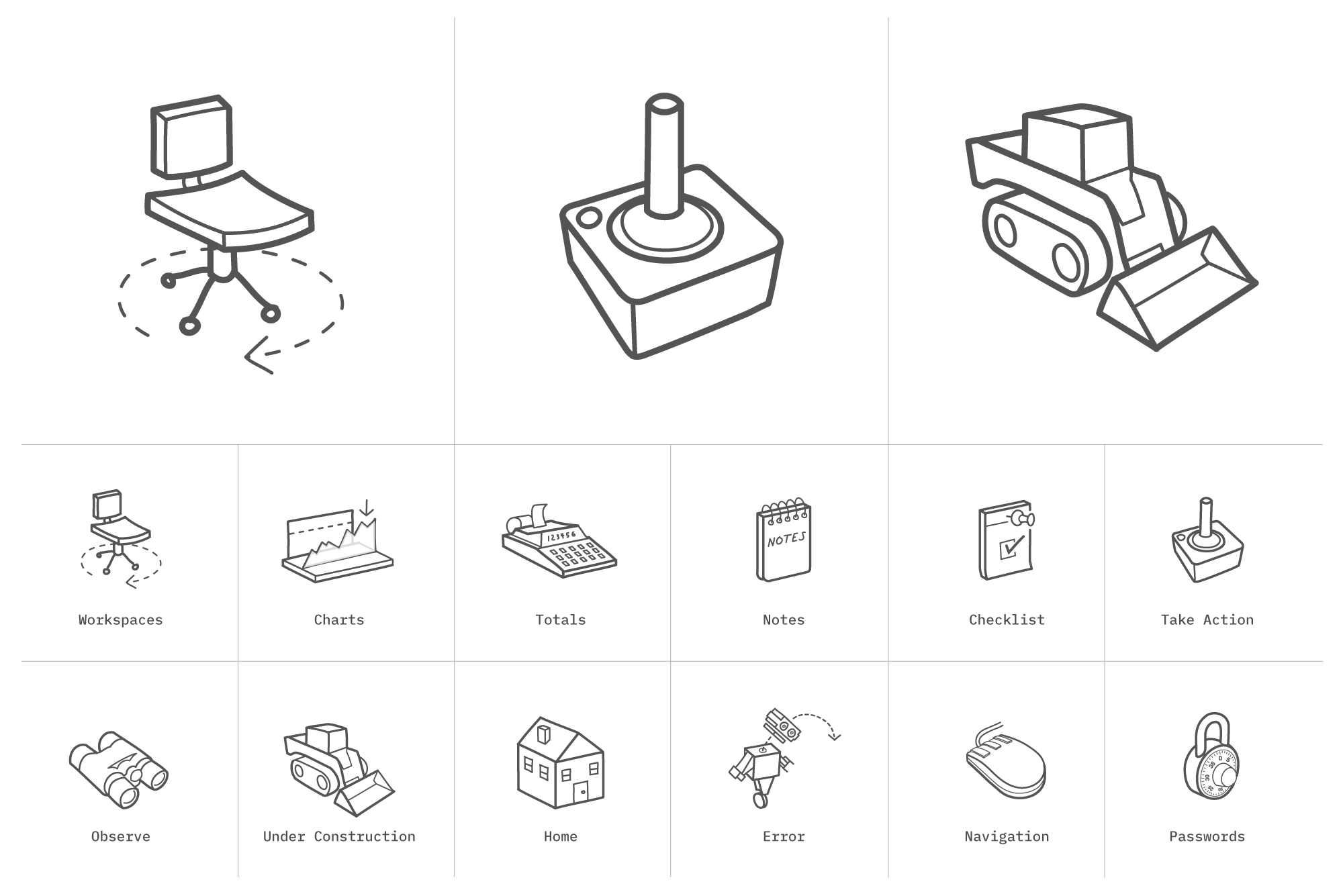 [↓] These icons were developed for exploratory vision documentation and wireframes for a data sharing startup.