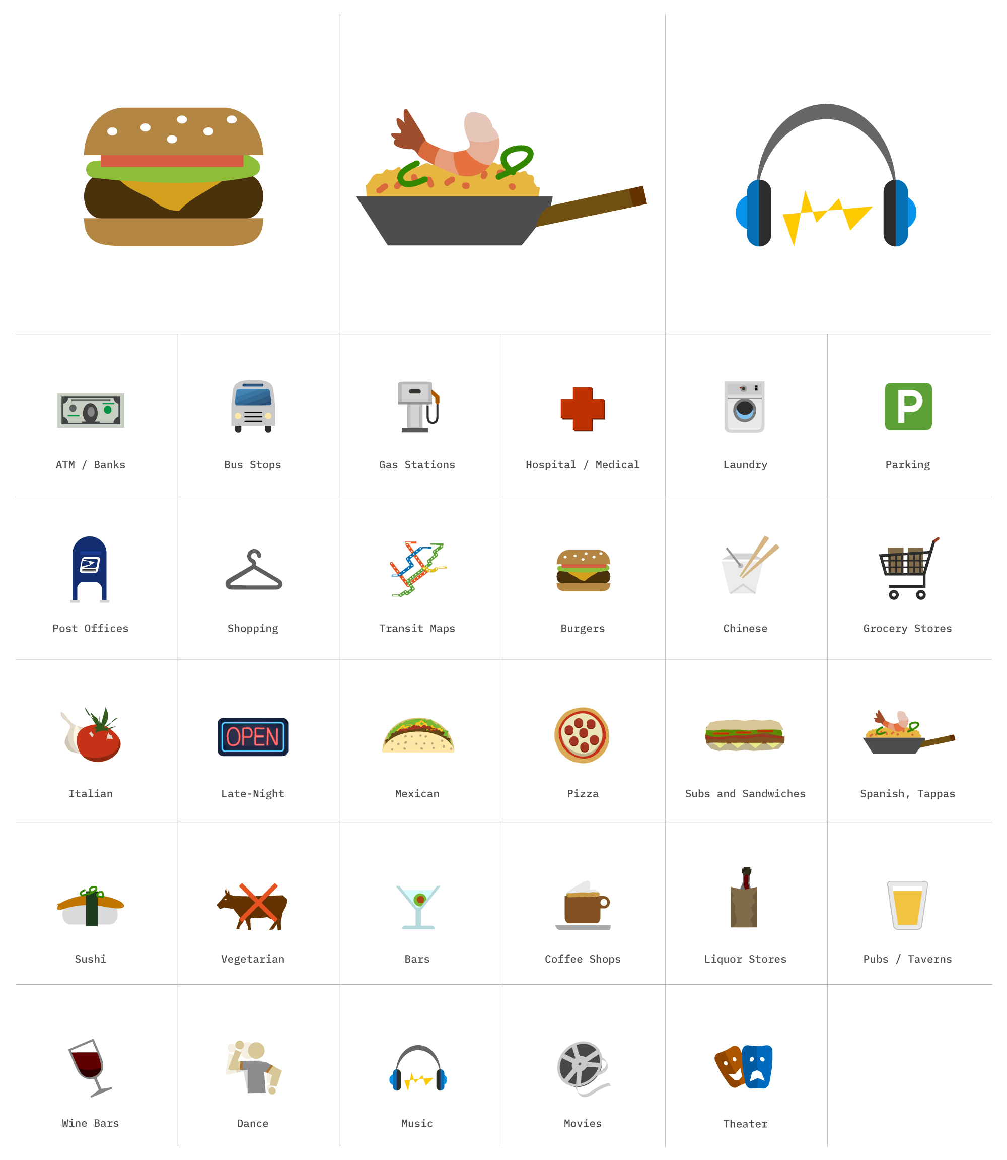[↓] These icons were designed for wireframing a MTV-branded local guide for college students.
