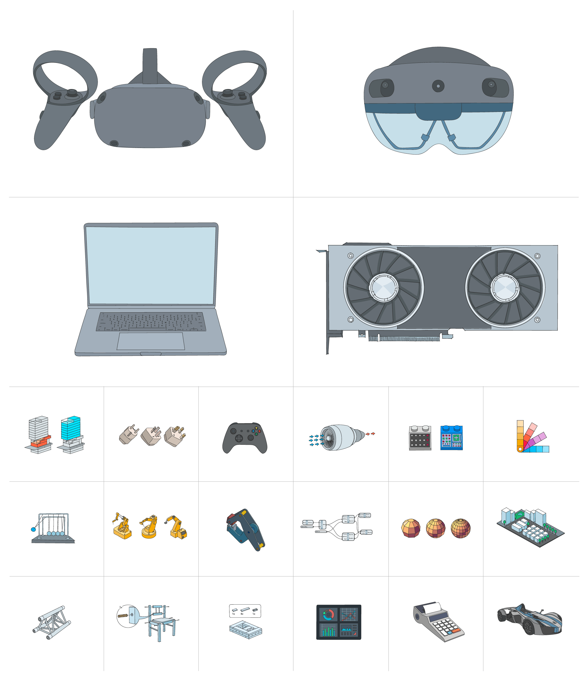 These illustrations and icons were designed to describe the product architecture for a CAD visualization platform.