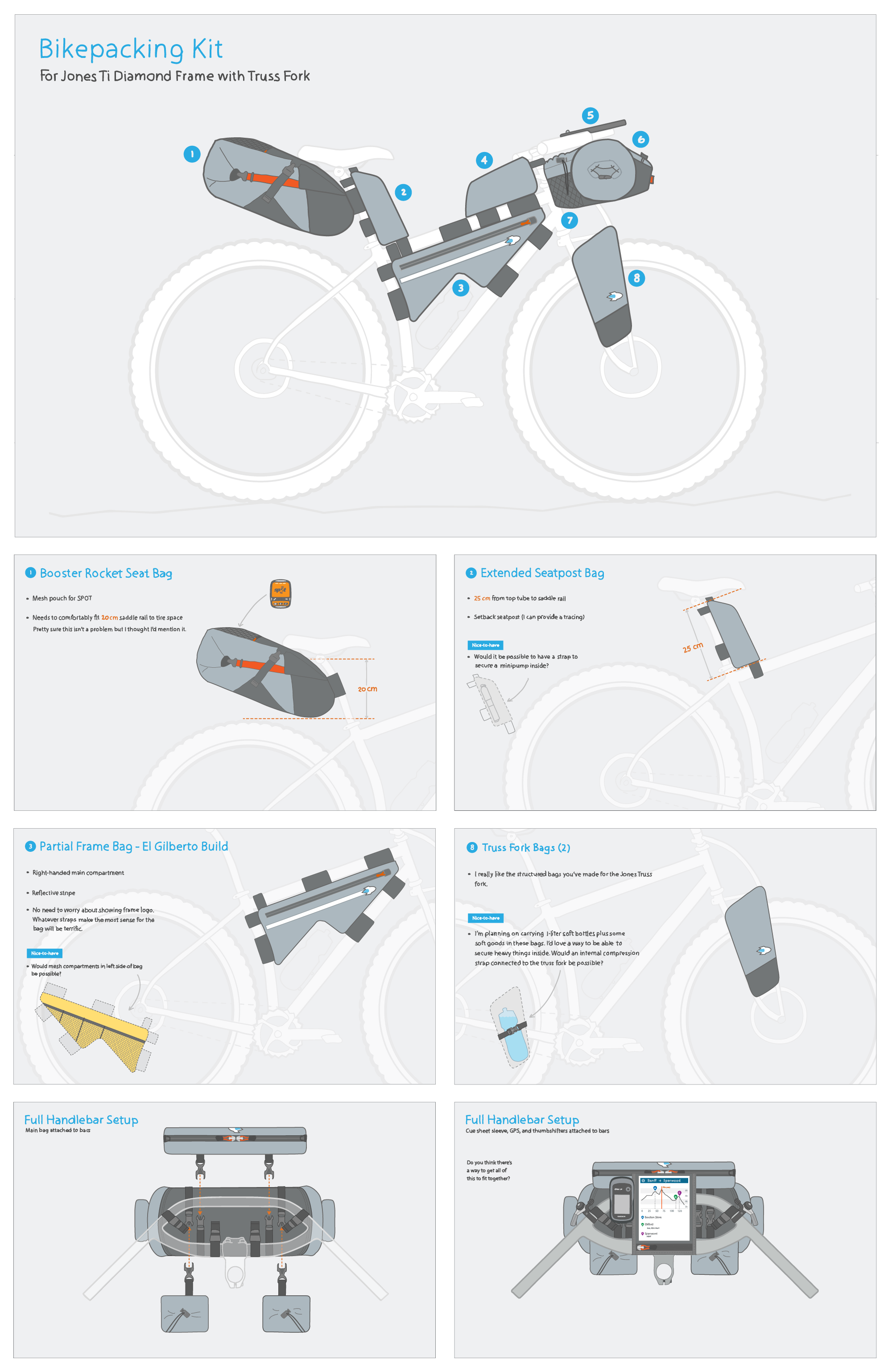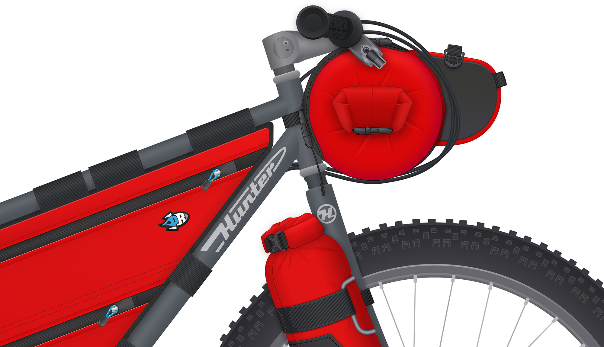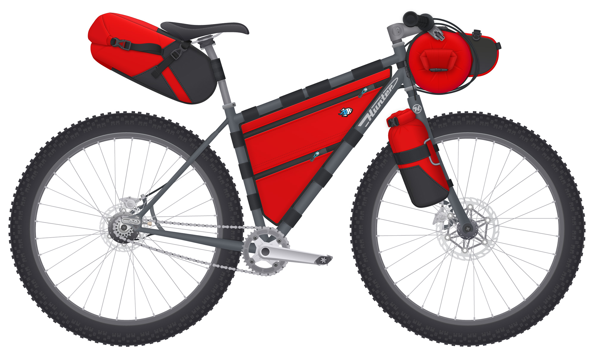 [↓] I created these illustrations to commission a set of bicycle bikepacking bags for long off-road touring adventures. The maker of the bags liked them so much that he commissioned an illustration for his website.